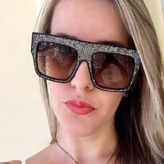 Trendy Vintage Luxury Diamond Oversized Square Crystal Frame Designer Fashion Retro Brand Sunglasses For Men And Women-Unique and Classy